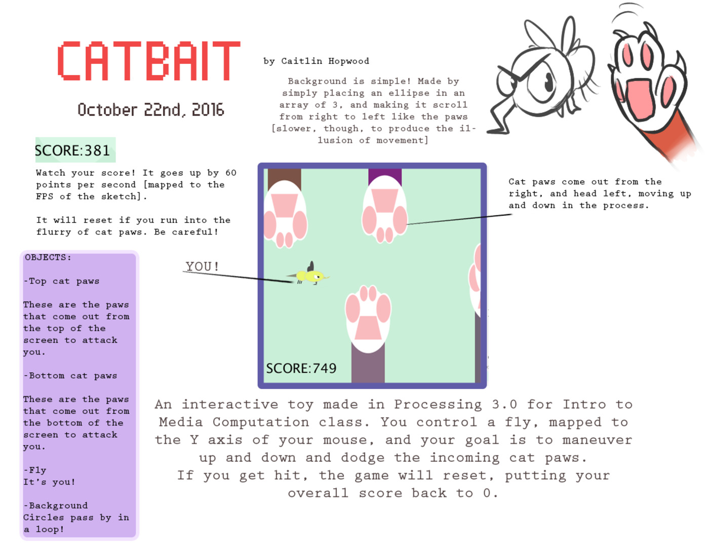 //if the paws collide with a certain box around the fly position, the game will reset