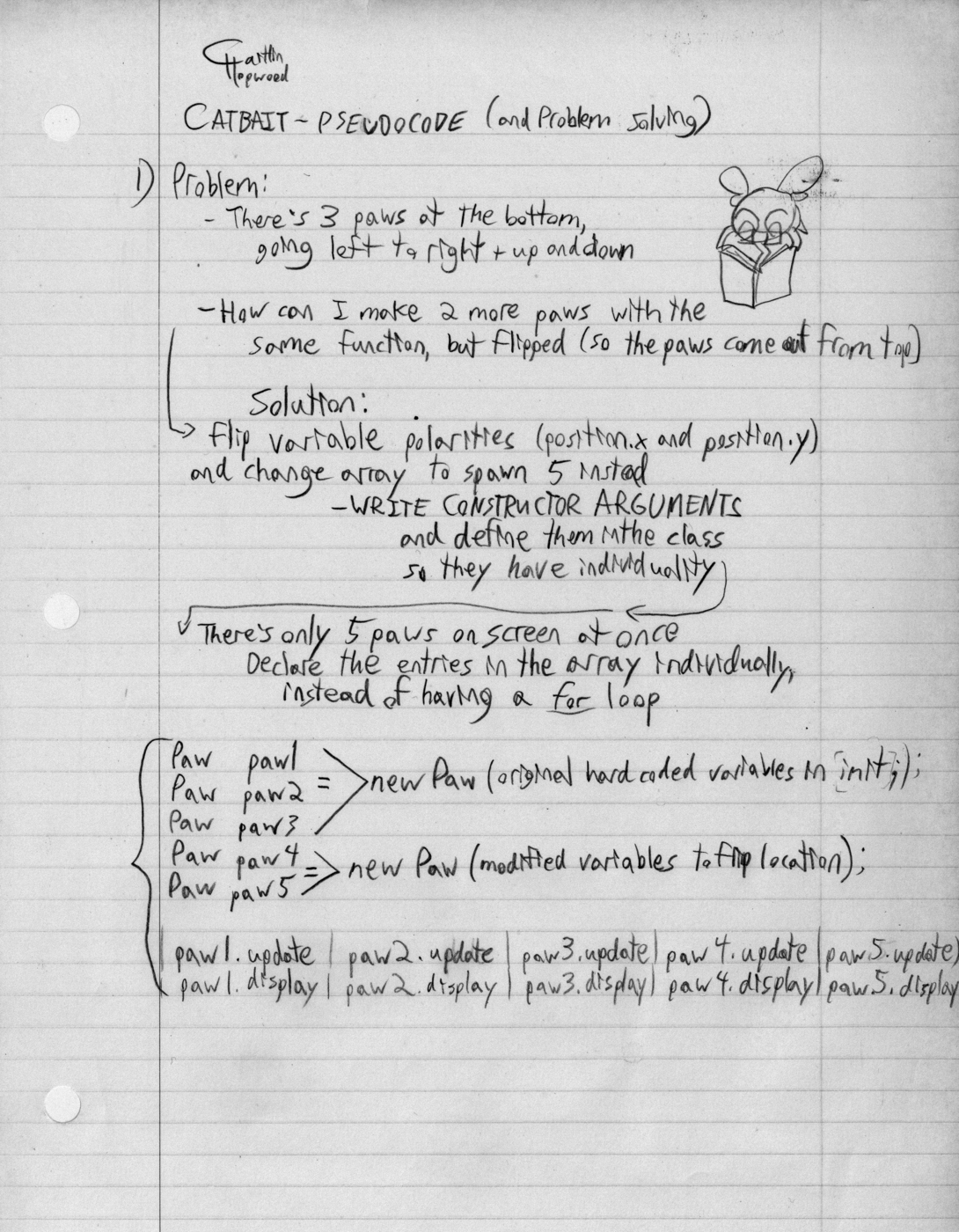 //FOR statement for updating bottom paws