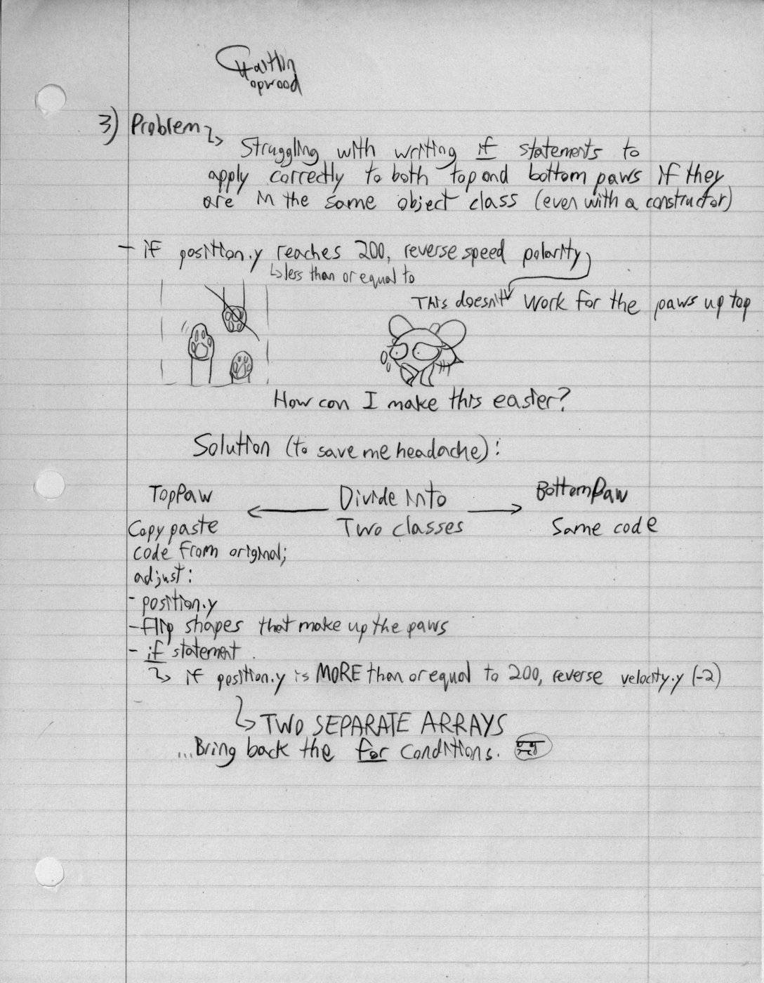 //if the top of the paw reaches a random position between 200 and 250px, reverse Y speed