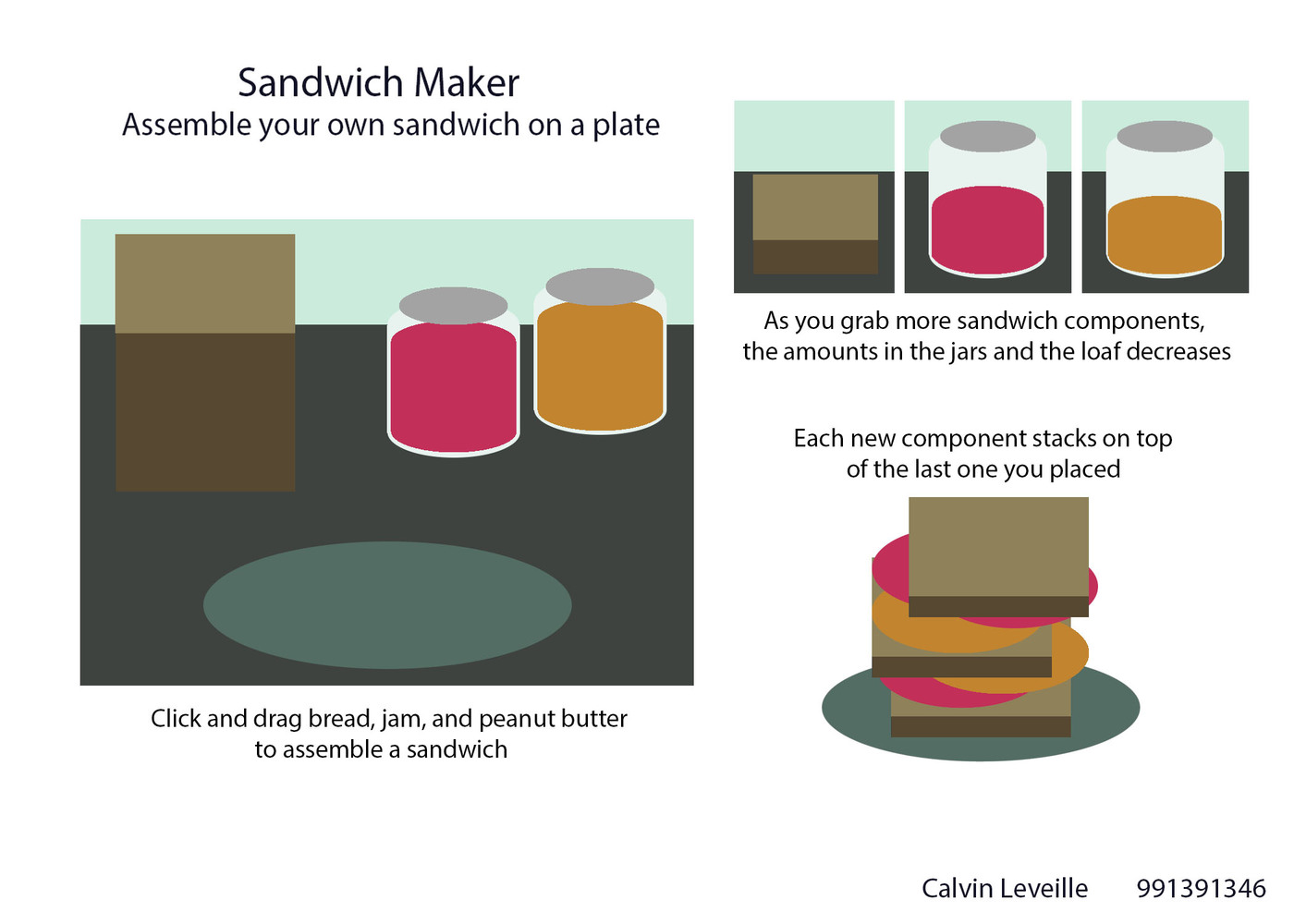 The bread and jam could be clicked and dragged around to build the sandwich. However, it appears I went a little