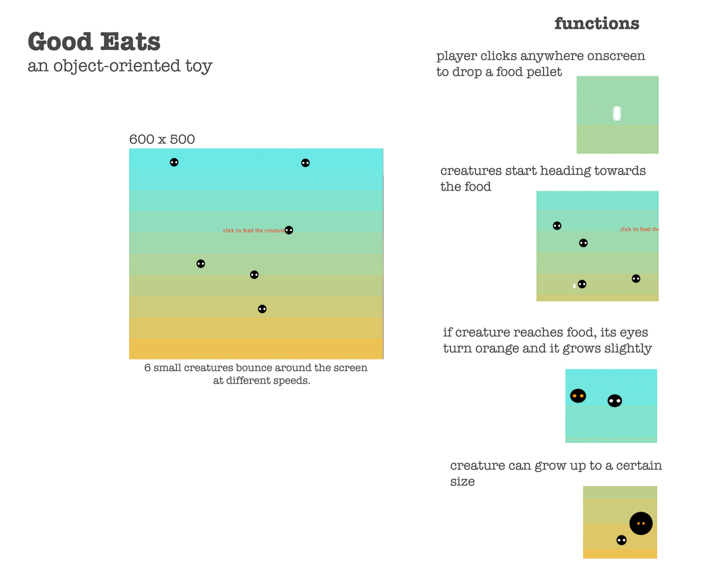 text("click to feed the creatures!", 225, 200);