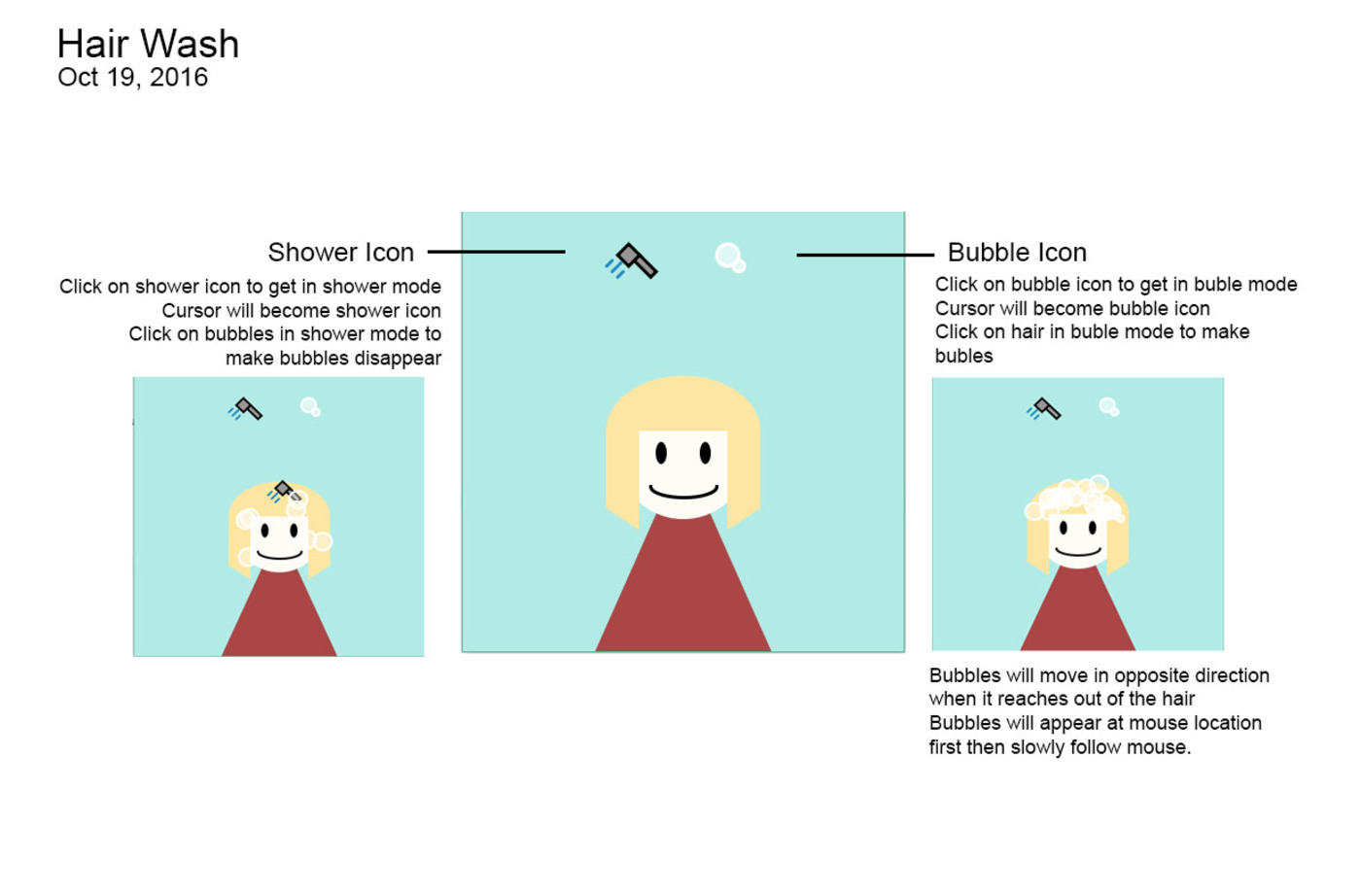 println("Click on the shower icon then her hair to rinse the bubbles");