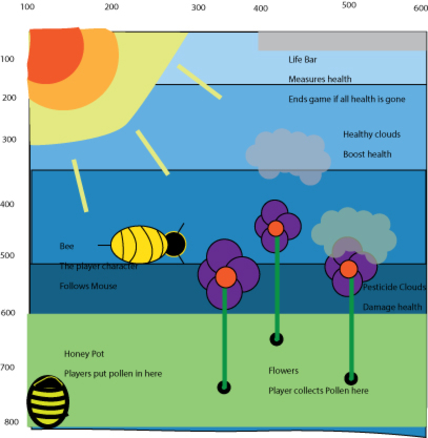 //As you pollinate flowers, your score will increase symbolized by sun flying in the sky