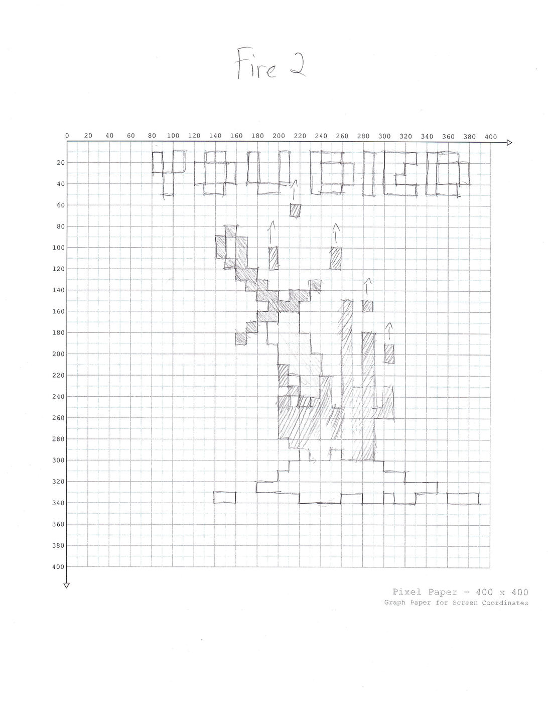 /////Fade in text upon lighting fire "You Died" in pixelated font/////