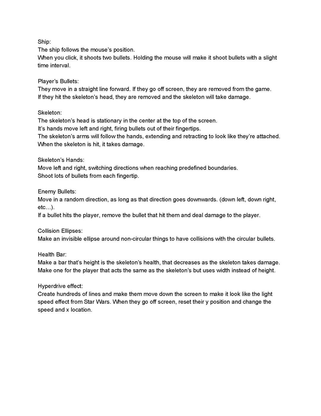 bullet = new playerBullet(position.x - 12.5, position.y, 3, 0, 10, #FFEA02);