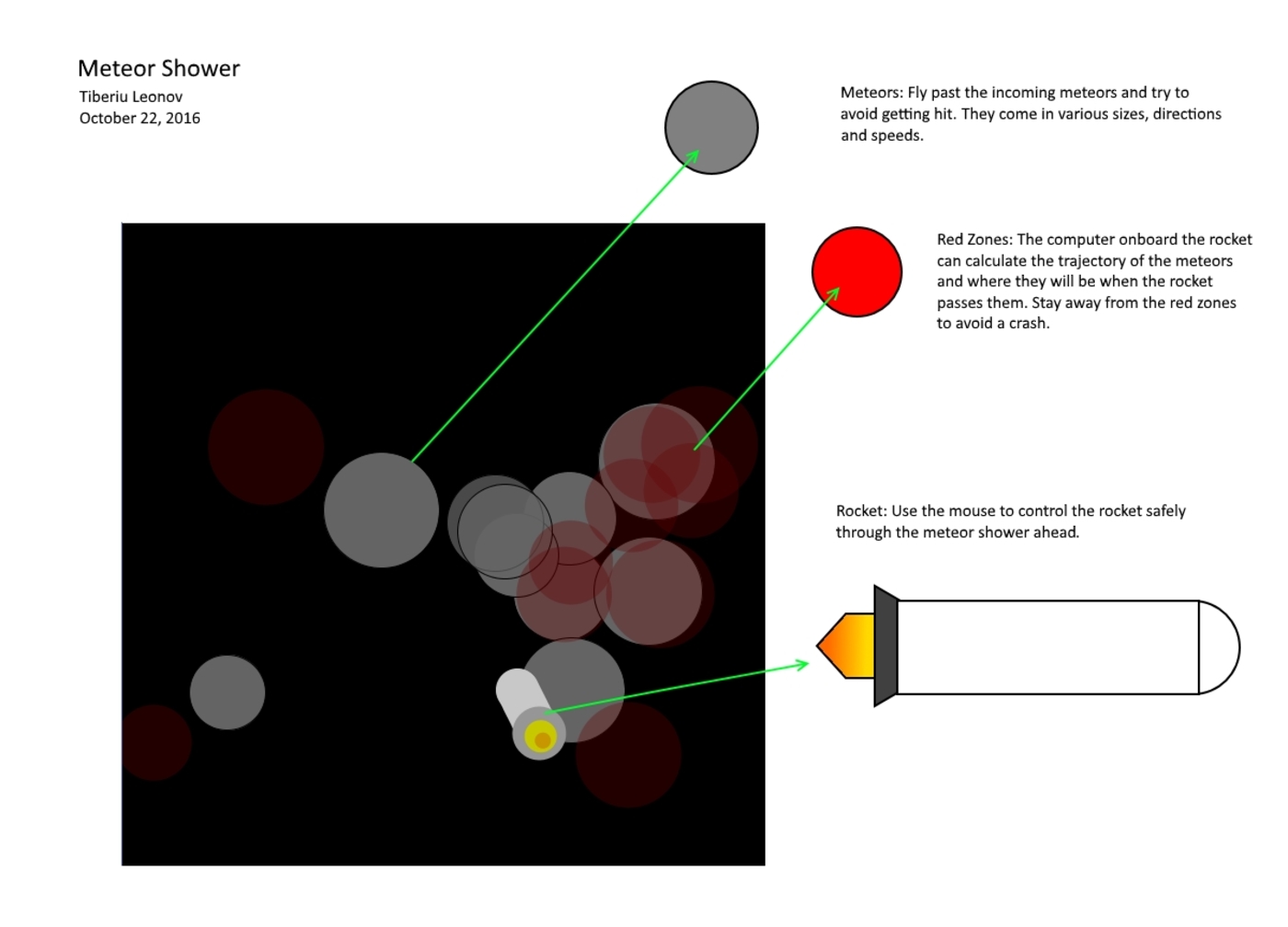 //the meteors move fropm the center of the screen towards the sides as the rocket passes them