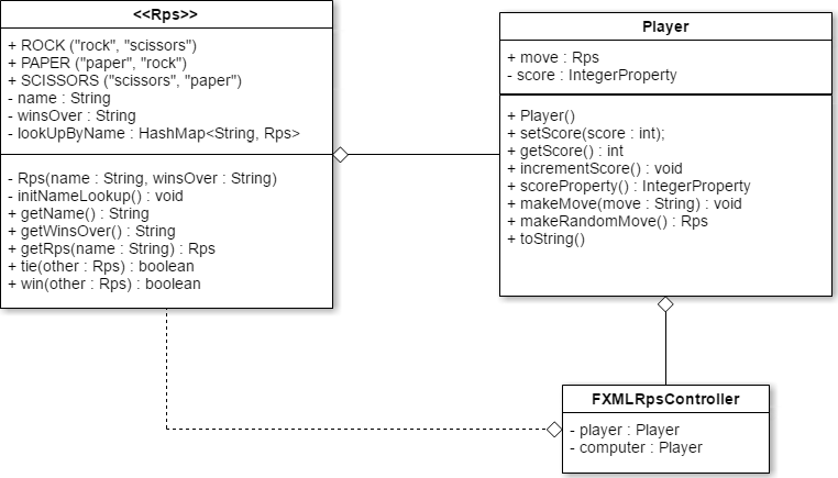The FXMLRpsController class is the controller class that is paired with the View for this application.